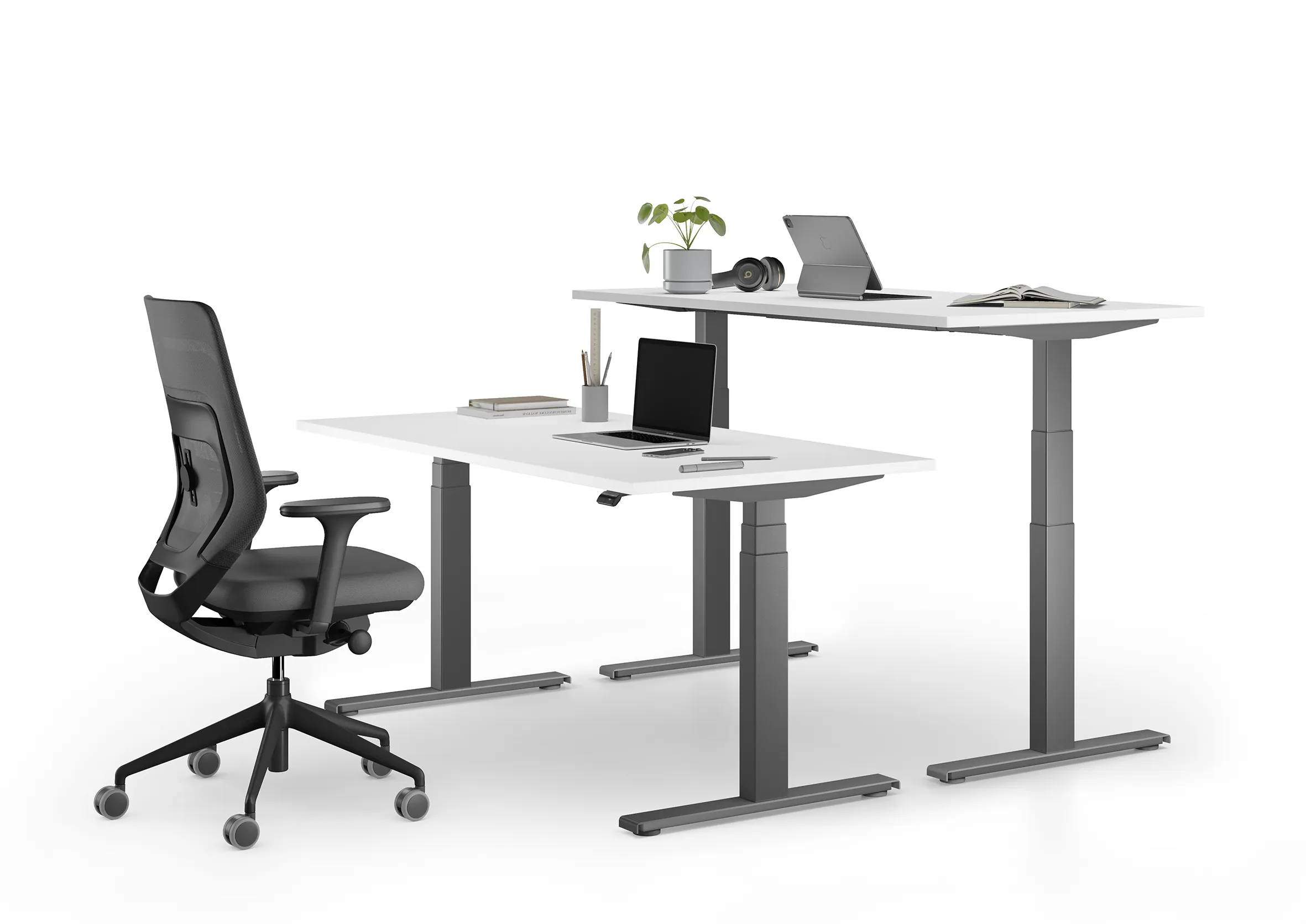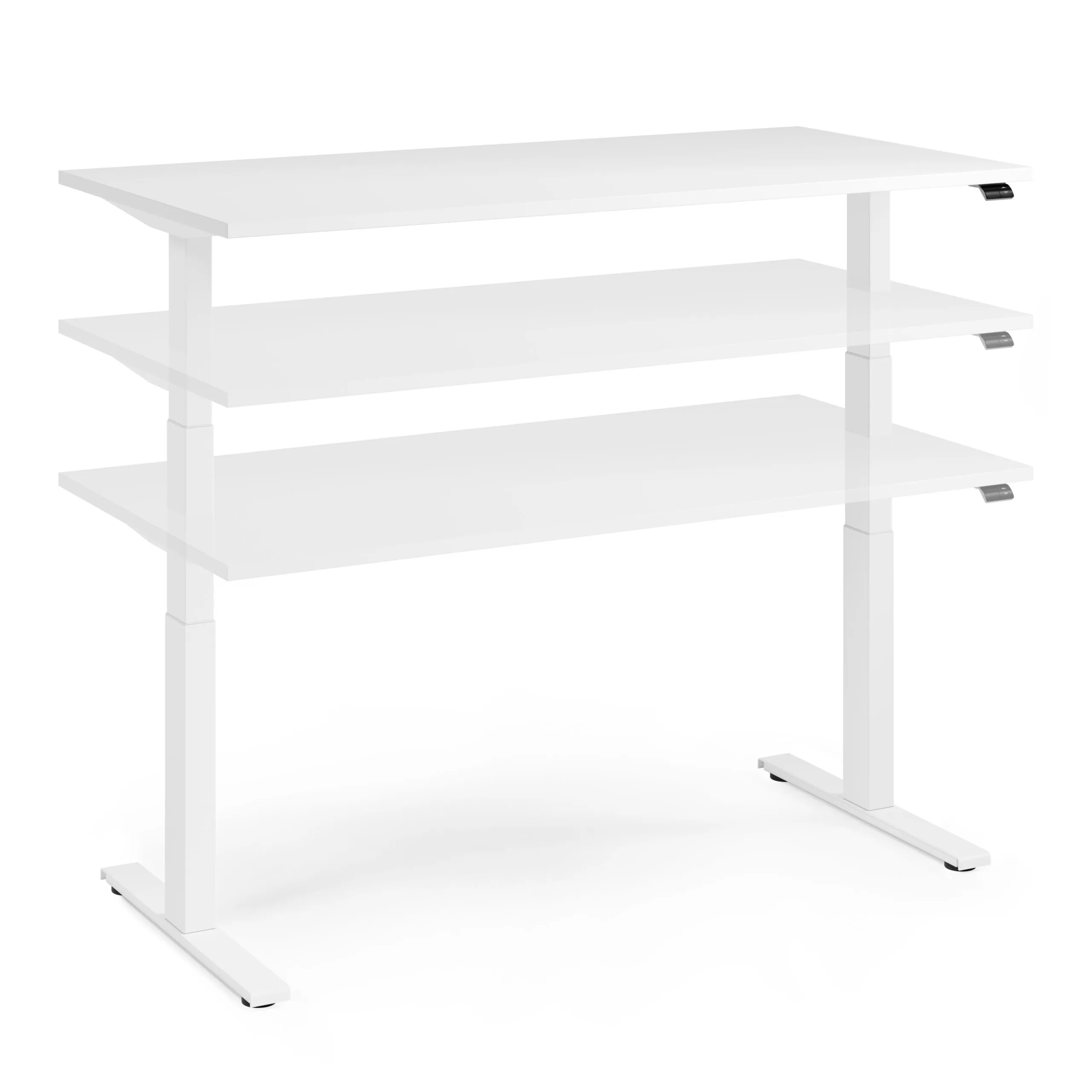 T-Kufen Ausführung mit einer elektromotorischen Höhenverstellung per Tastensteuerung. Die Höheneinstellung erfolgt durch zwei Elektromotoren oberhalb der teleskopierbaren Kufen von 648 – 1308 mm auf Tastendruck.Optionales Zubehör: Kabelkanal und verstellbarer PC-Halter